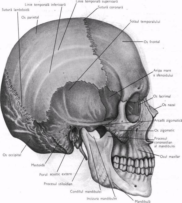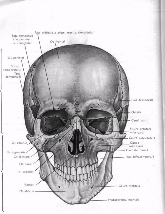 Intre aceste oase exista o serie de articulatii fixe numite suturi. Intre osul frontal si