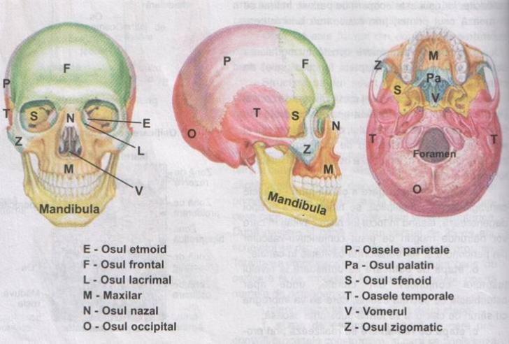 Piramida nazala , os zigomatic, mandibula, maxilar superior.