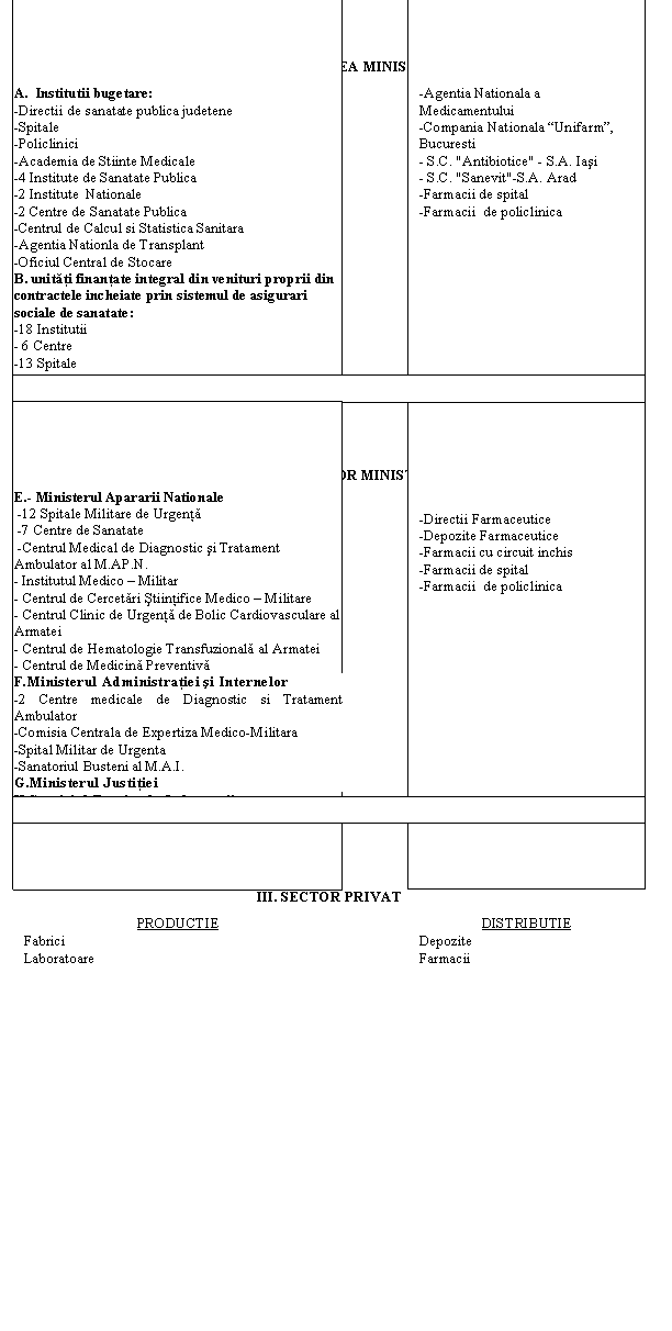 In schema nr. 3 sunt prezentate componentele Sistemului Sanitar National, dupa criteriul subordonarii administrative, sub aspectul subsistemului medical si cel farmaceutic: