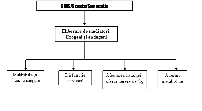 n Este caracterizat de sindrom inflamator sistemic, insuficienta circulatorie, avand drept consecinta alterarea grava a balantei "cerere de O2 versus oferta"