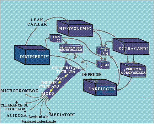 Hipoperfuzia tisulara/ perfuzia tisulara inadecvata are drept consecinta un aport inadecvat de oxigen, produce o afectare progresiva a metabolismului celular care se manifesta prin disfunctii/leziuni organice multiple si/sau moarte.