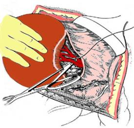 Fig. 3 - Mobilizarea splinei cu sectiunea ligamentelor spleno-colic si spleno-renal (5)