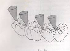 Stopurile ocluzale (cuspid - foseta antagonista) se stabilesc la acest grup intre cuspizi si numai 2 fosete centrale, majoritatea stopurilor stabilindu-se cu fosetele dintre crestele maxilare, loc in care procesele carioase si abraziunea au efecte distructive mai reduse, de unde si clasificarea acestor stopuri ocluzale pe primul loc ca importanta.