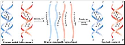 Figura 7 Denaturarea si renaturarea moleculelor de ADN dublu-catenare. |