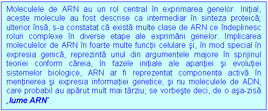 Toate moleculele de ARN dintr-o celula iau nastere printr-un proces numit transcriere genetica.