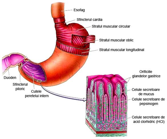 - glande cardiale - sunt situate in mucoasa regiuni orificiului cardia. Sunt glande tubuloase ce secreta lipaza stomacala si lichid alcalin bogat in mucina.