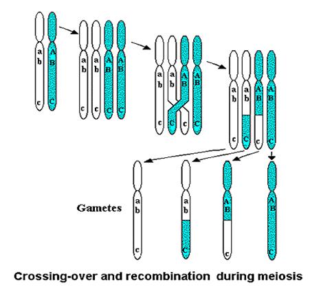 Cel de al doilea proces care are loc in timpul meiozei si impreuna cu aceasta contribuie la diversificarea si mai mare a organismelor este crossing-over-ul ,adica schimbul de material genetic intre cromozomii omologi.