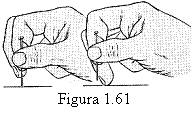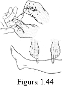 Discriminarea tactila (figura 1.63) consta in posibilitatea de a deosebi doi stimuli aplicati simultan pe tegument la o distanta oarecare. Ea se masoara cu ajutorul compasului Weber determinand indicele de discriminare (distanta minima la care doi stimuli aplicati sincron sunt perceputi distinct) care difera in functie de localizare (1-3 mm pentru buze si limba pana la 6-10 cm pentru spate, coapse).