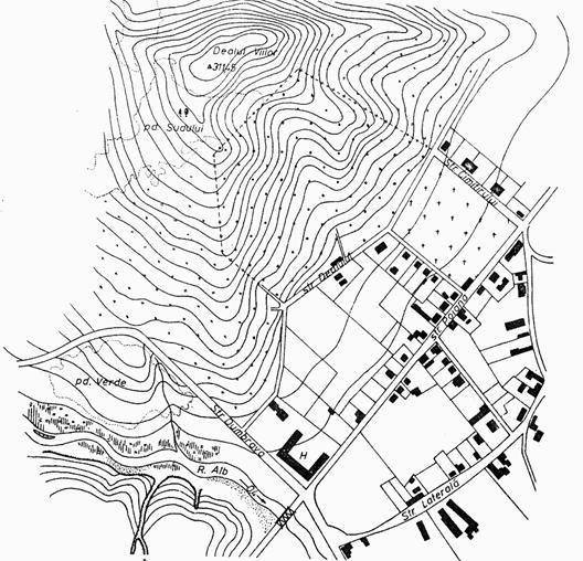 Elementele de altimetrie se redau prin curbe de nivel care se restituie una cate una, prin urmarire directa, actionand doar din miscarile x si y, dupa ce la inregistratorul altitudinal s-a introdus diferenta de paralaxa corespunzatoare curbei de nivel respective. Restitutia unei curbe de nivel se face, actionand miscarile de x si y in asa fel incat sa faca impresia ca imaginea marcii se gaseste in contact intim, tot timpul, cu modelul terenului. In urma procesului de restitutie stereofotogrametrica se obtine planul fotogrametric restituit cu curbe de nivel. (fig. 72).