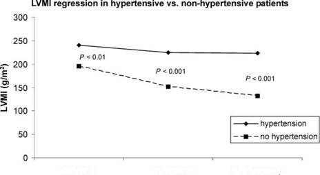 Chiar daca studiile clinice si pe animale au sugerat un efect negativ al hipertrofiei asupra performantei VS, incidentei aritmiei, si susceptibilitatii la ischemie, corelatia intre regresia hipertrofiei si rezultatul clinic, nu a fost investigata in totalitate. Am identificat doar 2 studii care au corelat direct gradul de extindere al regresiei masei VS dupa chirurgie, cu rezultatul postoperator: un mic studiu retrospectiv care a raportat unele beneficii clinice si un studiu multicentric care au aratat rezultate opuse. Totusi, ambele investigatii au avut cateva limite metodologice si nu pot fi privite ca fiind concluzive in aceasta privinta.
