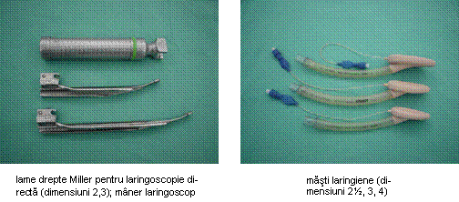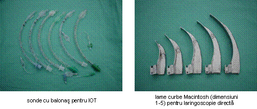 - lame de laringoscop de diverse dimensiuni, curbe (Macintosh) sau drepte (Miller);