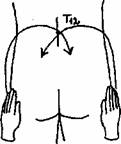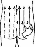 Se va descoperi numai regiunea dorsolombara, iar pe celelalte (regiuni) punem un cearsaf.Mascurul incepe masajul cu netezirea cu ambele palme pornind de la partea inferioara a feselor pe muschii paravertebrali sacrali si lombari pana la regiunea dorsala (T 12), unde face terminatia pe laterale in aer.A doua forma de netezire, tot cu ambele palme, se executa pe partile laterale ale feselor si ale muschilor dintati, facand terminatia cu mana peste mana pe T12 in unghi ascutit.Se mai face netezirea pe coloana cu doua degete departate de la coccis pana la T12.O alta forma de netezire se face cu cele doua police urmarind traiectul coccis, santul superior al muschilor fesieri, creasta iliaca si trohantere Pe muschii fesieri se face netezirea cu pumnul, derulandu-1 de la radacina catre varful degetelor de 3 - 4 ori.