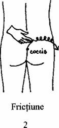 Si aici frictiunea este foarte importanta si se face in plica inghinala, dupa ce in prealabil am facut netezirea cu partea cubitala a degetelor, coapsa pacientului fiind putin flectata pe bazin.Avem grija sa o executam usor in zona triunghiului lui Scarpa, dupa care continuam cu frictiunea iarasi injurai trohanterului mare de mai multe ori.