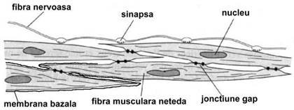tesut muscular neted, alcatuit din fibre musculare netede, (care contin miofibrile omogene),