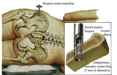 Biopsia trabecularelor - de obicei, sunt indepartate de catre creasta iliaca (pelvis) (figura 21) si se permite luarea de esanioane mici pentru masuratori directe ale structurii trabeculare in aceasta zona. De asemenea, sunt permise studii histologice (celulare) pentru a determina natura (structura) exacta a bolii. Agresivitatea tehnicii mareste riscul de infectii. Esantioanele mici pot sa nu reflecte complet statutul structurii osului, mai precis neomogenitatea osului trabecular.