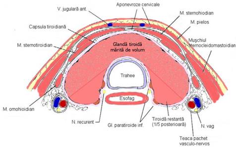 5. Este necesara cunoasterea anatomiei regionale si a tacticii chirurgicale pentru ca interventia sa decurga cat mai riguros, pentru a recunoaste si proteja formatiunile din vecinatate (paratiroidele, nervii recurenti).