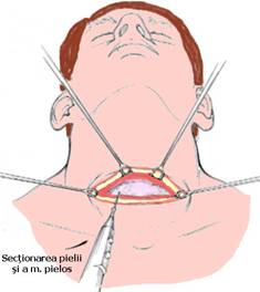 2. Este necesara o incizie corespunzatoare, care sa asigure o buna vizibilitate a formatiunilor anatomice si un acces larg in loja tiroidiana, dar care sa fie si estetica.