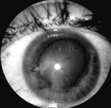 Pot apare ulceratii corneene pe o suprafata mai mare sau mai redusa sau edem corneean localizat sau difuz (cheratita edematoasa). In unele cazuri apare impregnarea hematica a corneei cu sange din camera anterioara, daca hipema persista mai mult .