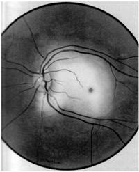 macula contrastand prin culoarea rosie ciresie. Arterele si