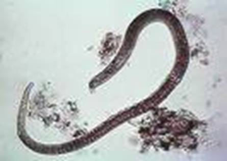 Parazitul este un nematod in forma de fir, masculul are o lungime de 1,5 mm iar femela masoara 3-4 mm