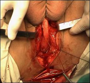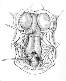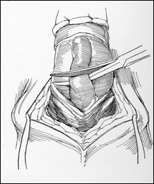 Sir William MacCormack, pe un lot de 5 pacienti in 1886, a facut penectomii totale, sectionand scrotul cu incizii inghinale bilaterale similare cu cele ale lui Thiersch.