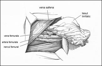 Rolul disectiei nodulilor limfatici in cancerul penian a crescut odata cu descrierea anatomica a ganglionilor regiunii inghinale realizata de Daseler in 1948. Cinci ani mai tarziu, Baronofsky descria disectia ganglionilor ilioinghinali, inclusiv aducerea muschiului croitor pentru a acoperi vasele femurale.