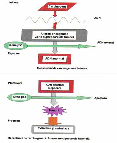 Primul set de gene este cunoscut ca proto-oncogene, iar al doilea, cunoscut ca gene supresoare tumorale, este incriminat in inhibarea cresterii celulare si pare ca are consecinte in protectia impotriva aparitiei cancerului.[38].