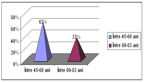 2. Majoritatea pacientilor diagnosticati cu tumoare vezicala superficiala sunt de sex masculin ( 59% ), frecventa maxima de aparitie fiind la varsta de 62 ani.