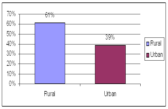 6. Majoritatea pacientilor sunt din mediul rural 61% , aceasta datorandu-se in mare parte adresabilitatii intarziate a pacientilor.