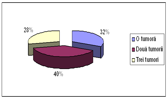 12. S-au evidentiat 40% pacienti cu cate doua tumori concomitente si 28% pacienti cu cate trei tumori concomitnte.