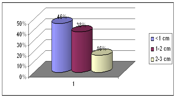 10. Majoritatea tumorilor studiate au avut dimensiuni sub 1 cm, 46%, dimensiunea mica este un avantaj, permitand o abordare chirurgicala mai usoara si vindecare mai rapida.