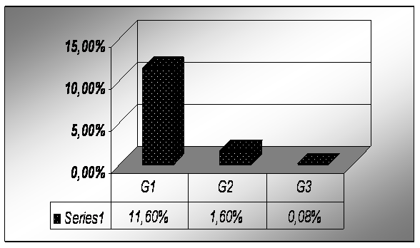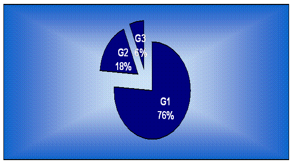 13. Potrivit studiului efectuat, s-au gasit 6% tumori cu grading G3 si 76% tumori cu grading G1.