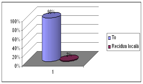 20. Rezultate bune la 2 ani postoperator, s-au gasit recidiva locale la 18 pacienti din 155, cu grading G1, si la 1 pacient din 12, cu grading G3.