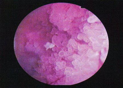 8. Pentru diagnostic complet si de certitudine este esentiala efectuarea cistoscopiei cu prelevare bioptica a unor fragmente de mucoasa vezicala in scopul examinarii histopatologice.