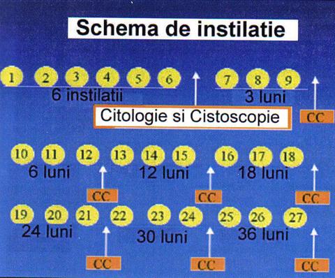 dupa TUR-V se aplica instilatii saptamanale timp de 6 luni (inductie);