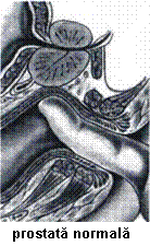 Prostata = glanda anexa aparatului genital masculin, situata in spatiul pelvisubperitoneal, sub vezica urinara. In lungime de circa 2.5 cm, prezinta 2 lobi intre care exista un sant median. Poate fi palpata pe peretele anterior al rectului, prin tuseu rectal.