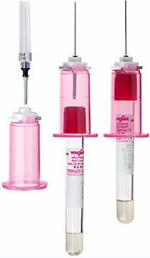 in cazul punctiei venoase cu ajutorul unui ac steril atasat la seringa sterila aspirarea sangelui se face prin retragerea lenta a pistonului pana la extragerea cantitatii necesare.