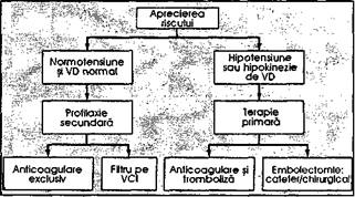 FIGURA 261-2 Tratamentul TEP acut: aprecierea riscului. VD, ventricul drept, VCI, vena cava inferioara. |