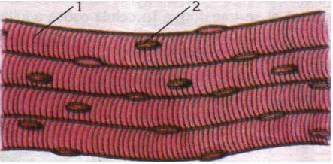 Tesutul striat de tip cardiac 1. striatie; 2. nucleu; 3. disc intercalar