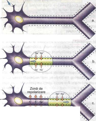 a. potential de repaus b. potential de actiune c. repolarizarea membranei