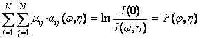 Notam cu mij coeficientul de absorbtie aferent elementului (pixelului) Eij, unde i, j = 1,., N si cu aij(j h) lungimea echivalenta parcursa de spotul explorator, calculata o singura data si memorata. Se obtine astfel ecuatia cu necunoscutele mij de forma