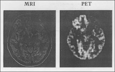 Figura 8.21 Malformatie arteriovenoas. PET indic metabolism deficitar al glucozei