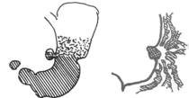 Nisa pediculata, care apare ca un diverticul la nivelul mici curburi, legat de stomac printr-un pedicul subtire -are intotdeauna semnificatia unui ulcer penetrant (fig.2)