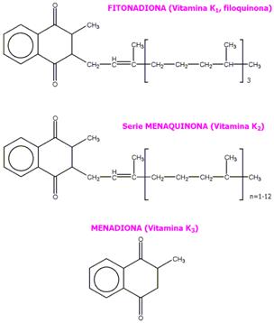 Este alcatuita, din punct de vedere chimic, din mai multe substante cu caracter fiziologic analog. Vitaminele din grupa K (K1-K7) sunt foarte raspandite in produsele de origine vegetala (foile verzi de spanac, varza, conopida, urzici, brocoli) si animala (ficat, muschi etc.).
