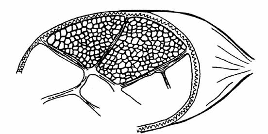 Fig. 1 - Reprezentare grafica a unei secțiuni a mușchiului in care se evidențiaza manunchiurile de fibre (sursa: Voyle, 1974)
