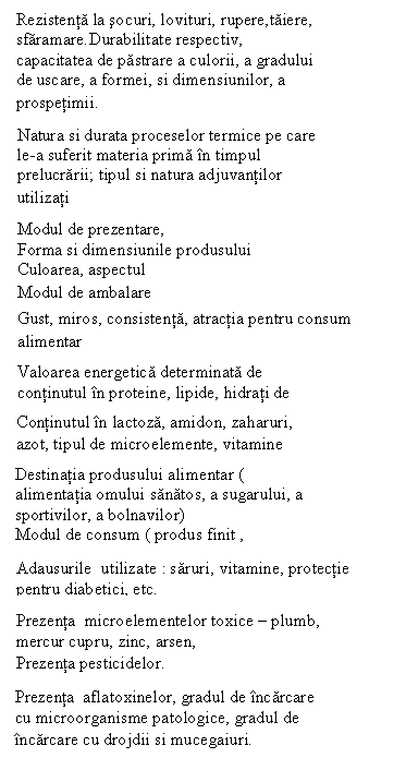 3.1.1 Caracteristici esentiale ale alimentelor: