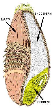 Aceasta este o imagine clasica si relativa de reprezentare a bobului de grau. Alte grane au o structura similara. Nu exista numai trei portiuni principale uniforme: tarata, germene si endosperm. Exista straturi si diferentieri in fiecare dintre aceste trei portiuni principale. Separarea acestor trei parti ale granelor are impact asupra calitatii tuturor produselor. Cereale diferite, produse de panificatie si nutrifarmaceutice preiau avantajele caracteristicilor respective ale endospermului, taratei si germenelui.