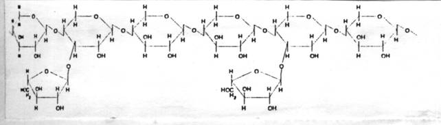 Moleculele de arabinoza se leaga la aceasta catena principala prin legaturi b-1,3-glicozidice (unele dintre ele, in pentozanii insolubili, sunt b-1,2). Pentozanii solubili contin aproximativ o molecula de arabinoza la 3 molecule de xiloza, in timp ce pentozanii insolubili contin o cantitate mai mare de arabinoza (Stauffer, 1990).