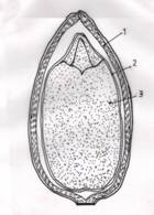 1-membrana; 2- granule aleuronice; 3- oleoplasma; 4- nucleul.