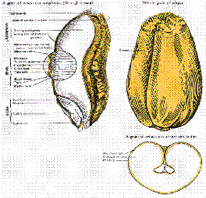 Daca se face o sectiune transversala prin bobul de grau se observa urmatoarele parti: